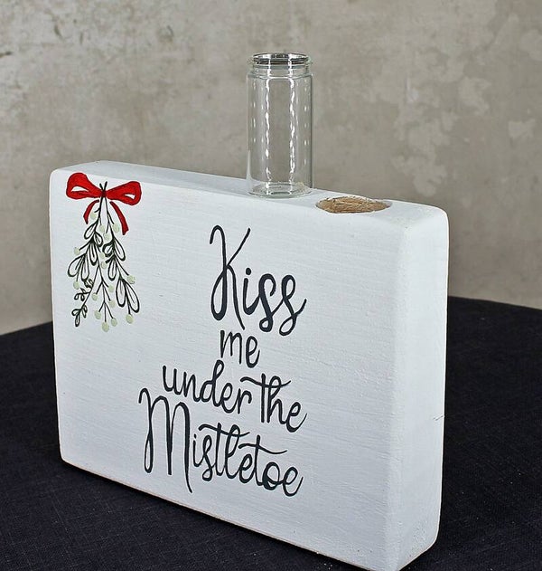 Farmhouse Deko Weihnachten Holzschild mit Väschen Handlettering "Kiss me under the mistletoe"