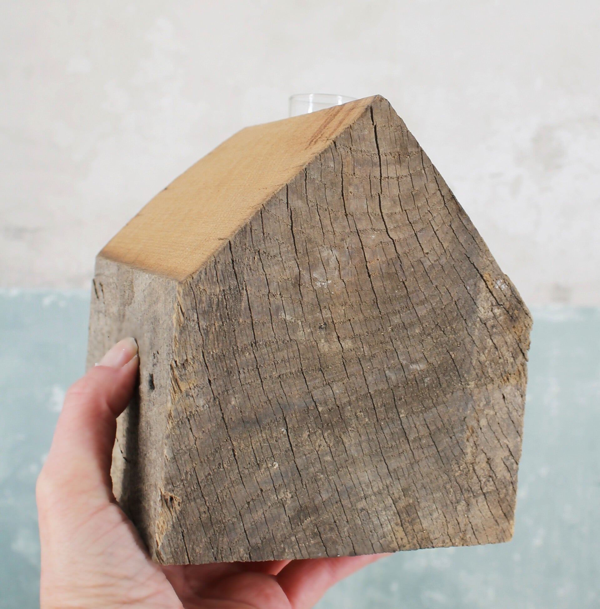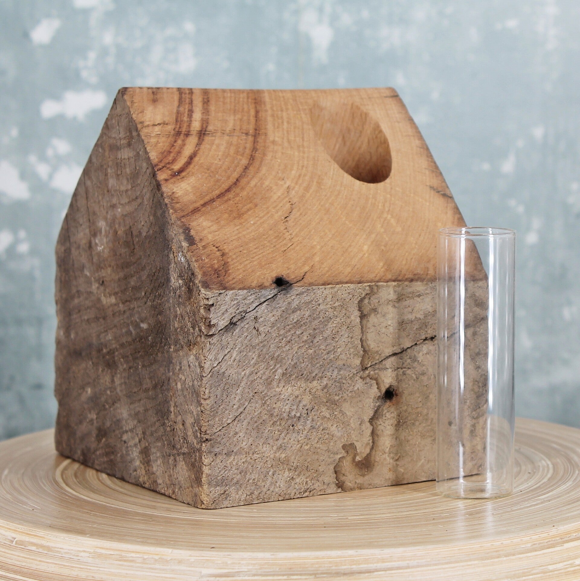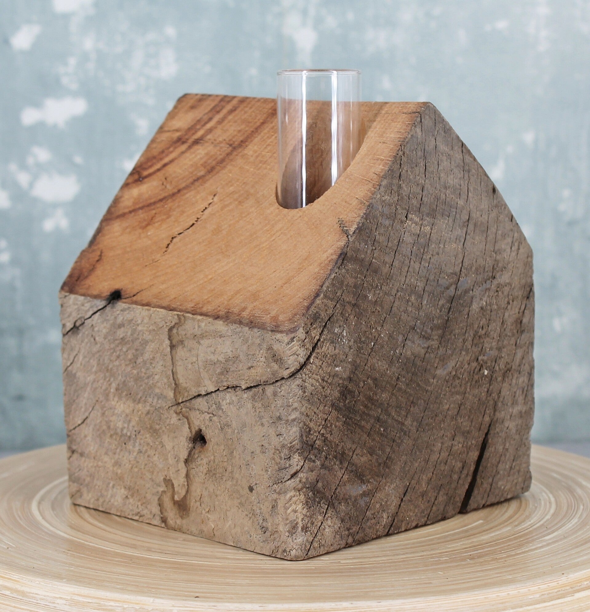 Haus aus massiver alter Eiche - mit kleiner Glasvase - Einzelstück