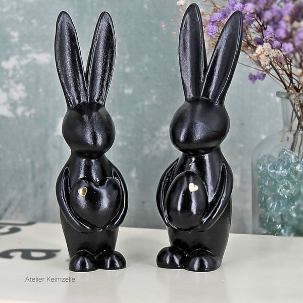 Set - Zwei Häschen aus Raysin - Osterdeko - Ei - Herz - Schwarz oder Weiß