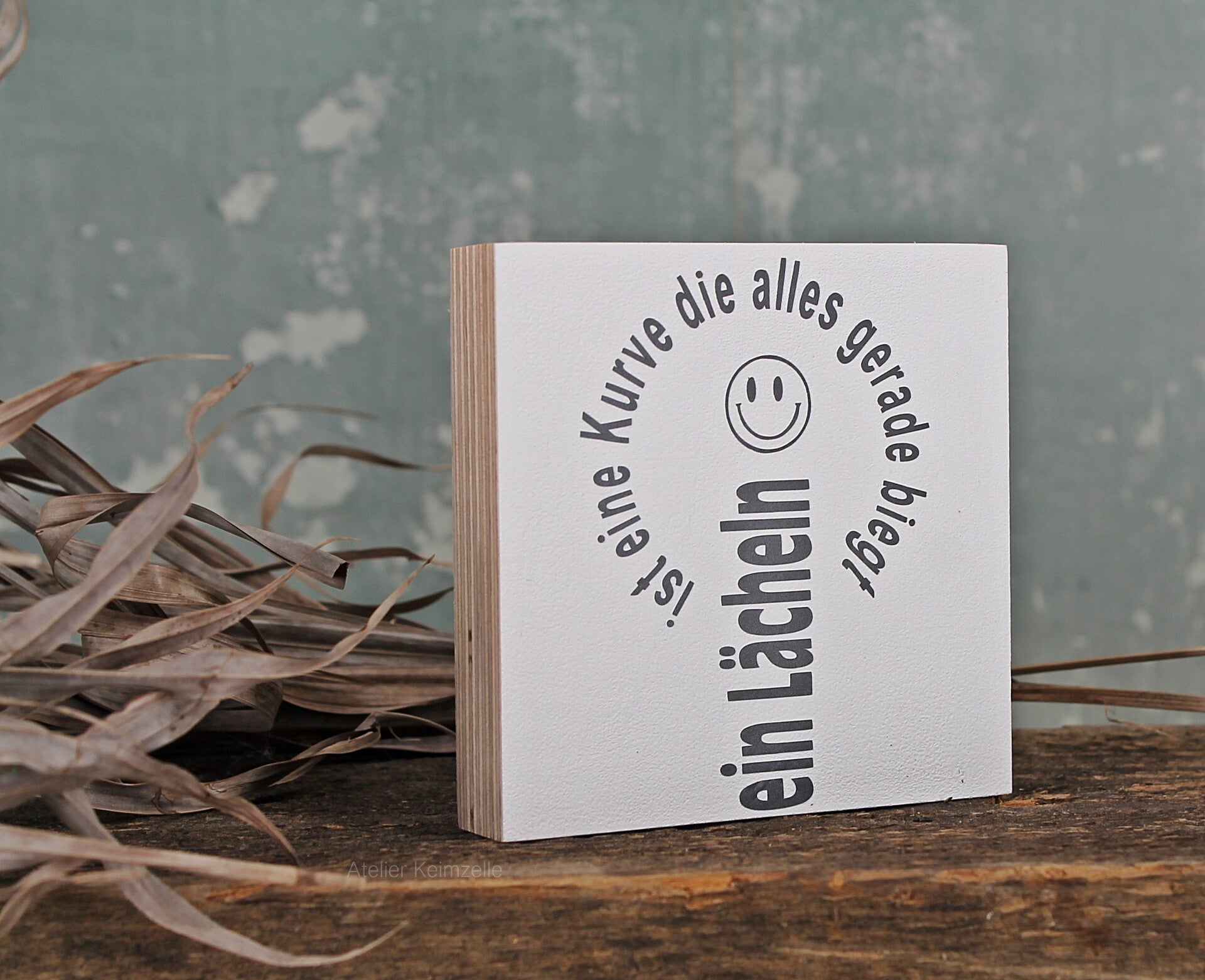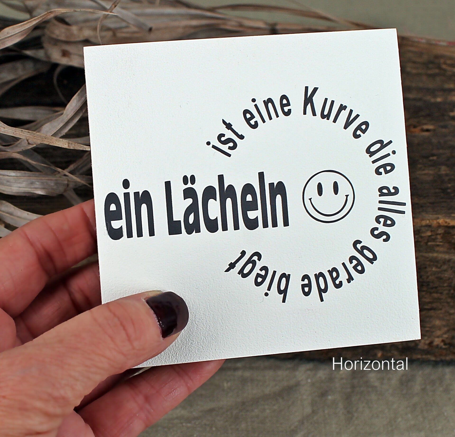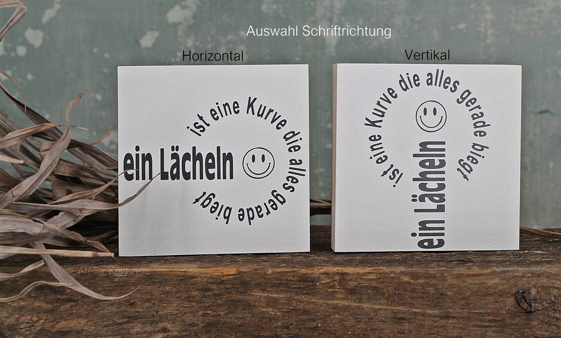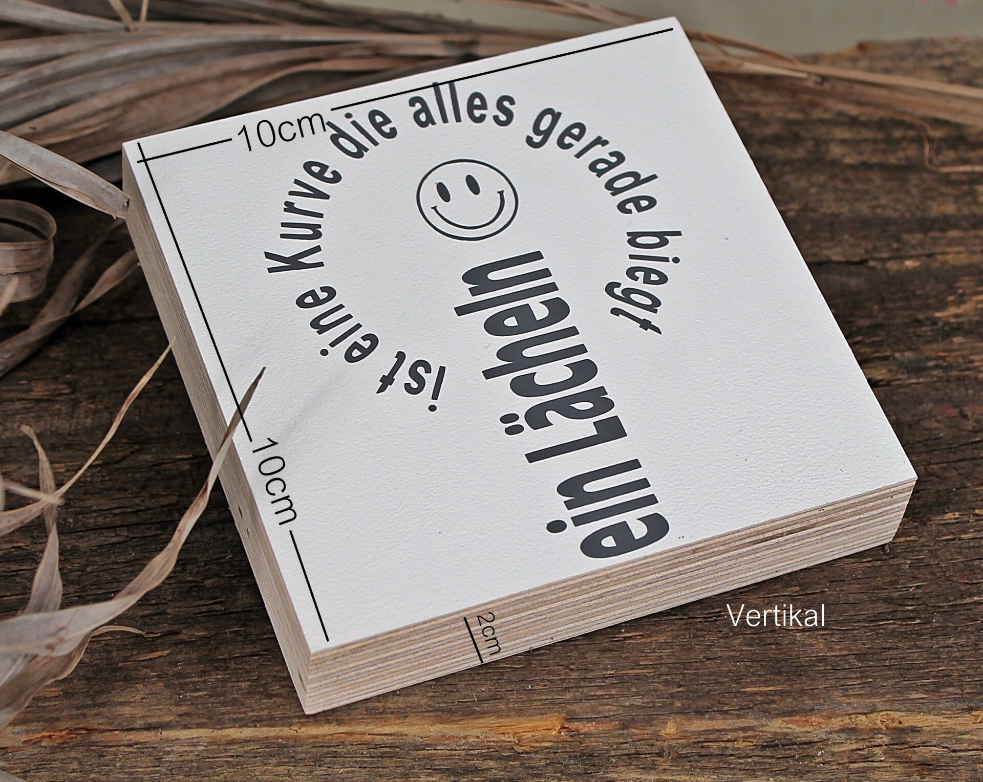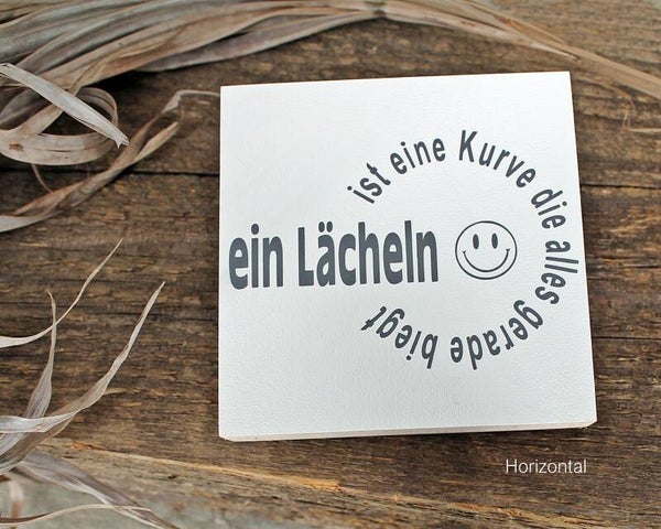 Holzschild mit Spruch, Lächeln, 10x10x2cm