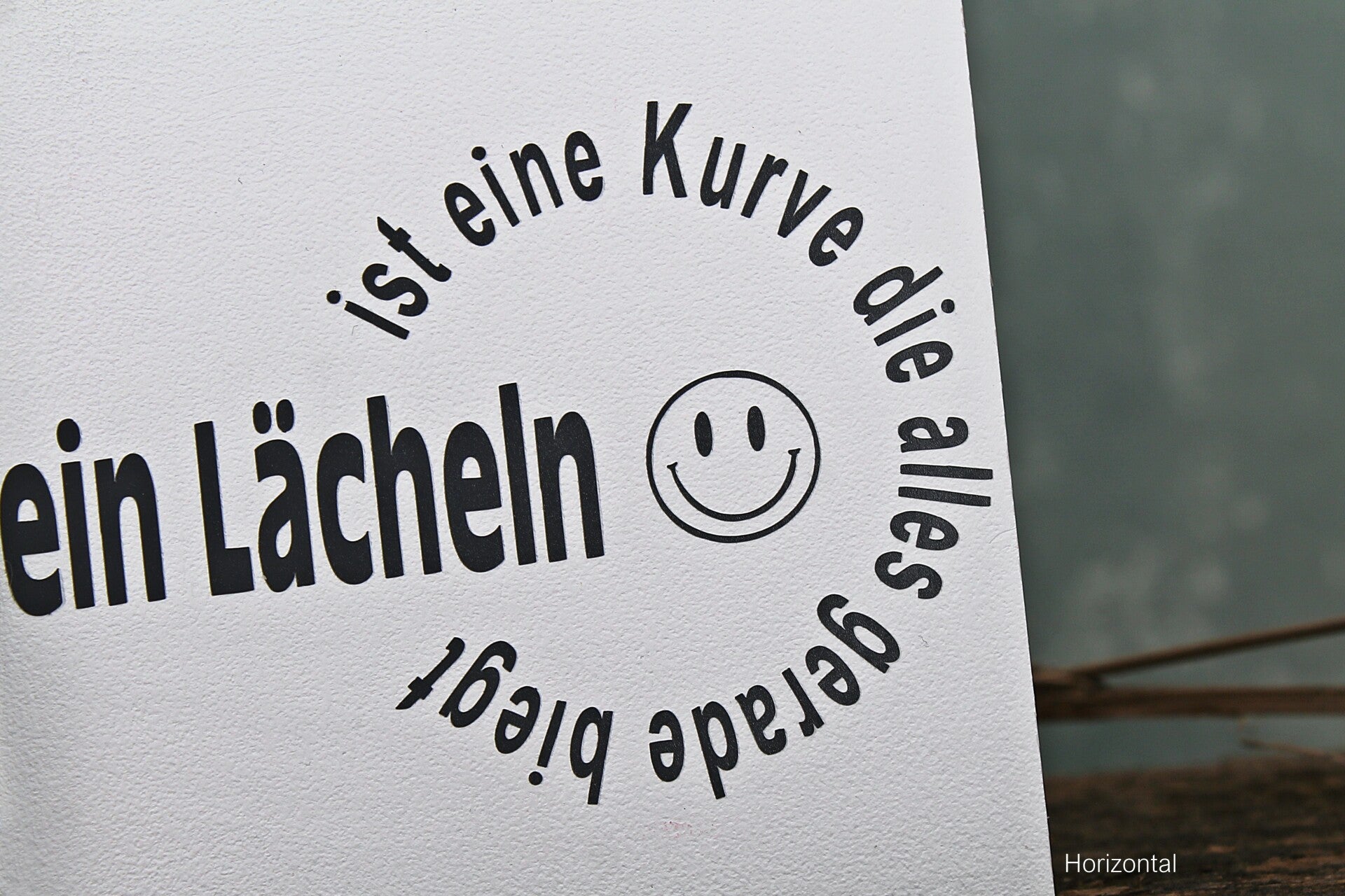 Zur Auswahl stehen zwei unterschiedliche Ausrichtungen des Schriftzuges, bzw des Smileys.