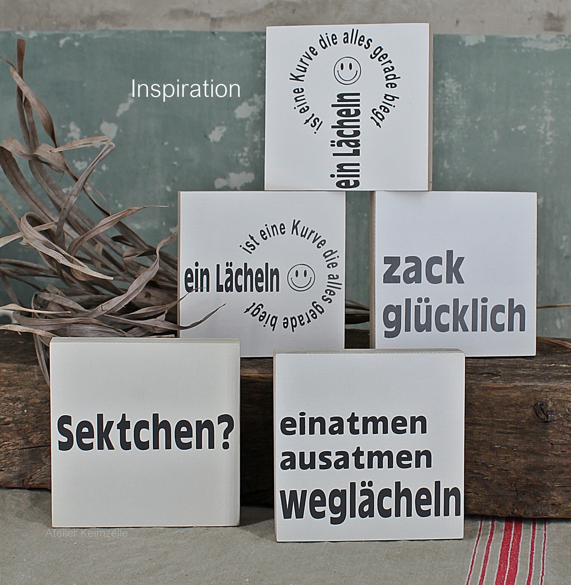 Wir haben weitere handgearbeitete Schilder im Shop, so kann eine Wand, oder ein Regal mit einfallsreichen Einwortsätzen und kurzen positiven Sprüchen in klarem Schwarz und Weiß zur einzigartigen Collage werden.